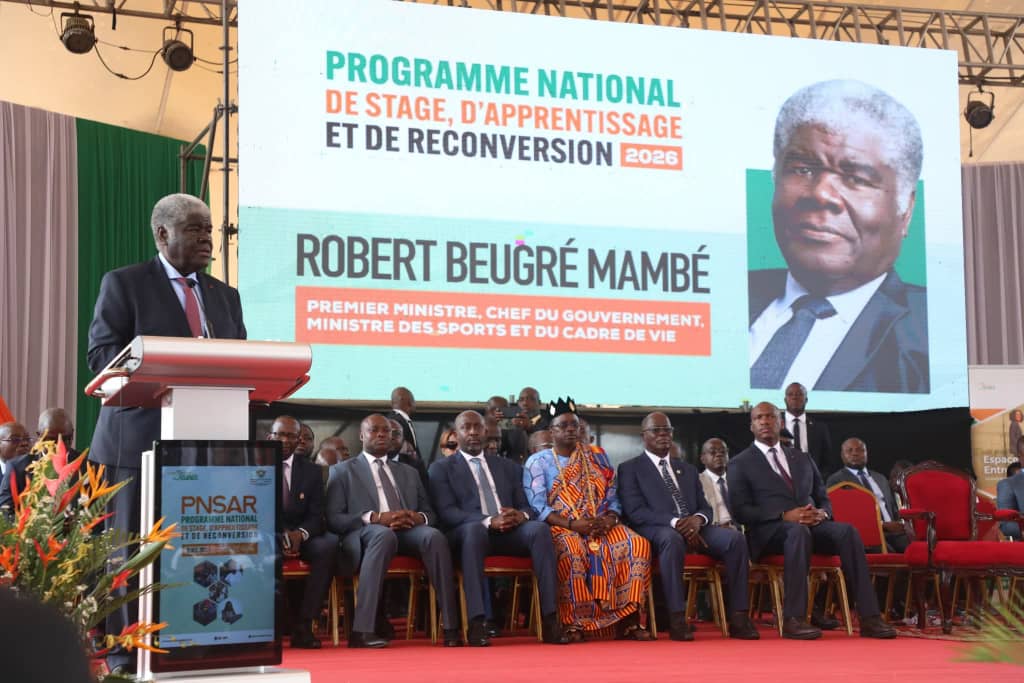 Le Palais de la Culture de Treichville a été le théâtre, ce mercredi 10 décembre 2025, de la cérémonie de lancement officiel du Programme National de Stage, d'Apprentissage et de Reconversion (PNSAR 2026). L'événement a bénéficié du haut patronage de Monsieur Robert Beugré Mambé , Premier Ministre, Chef du Gouvernement, également Ministre des Sports et du Cadre de Vie.